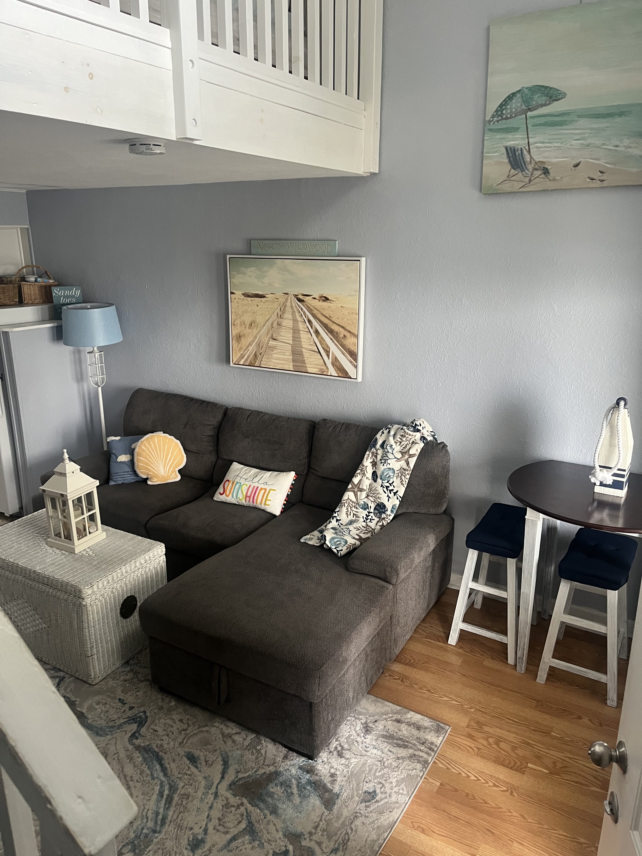 Located just a short stroll from the beach, this bright and spacious North Wildwood beach rental sleeps up to 6 people and offers everything you need for a relaxing stay at the shore. The unit features a fully equipped kitchen, a comfortable living area, and a versatile sleeping layout, including a cozy loft with a bed and a bunk bed, making it a great fit for families, couples, or small groups.